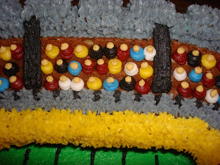 This was made for a Superbowl party that we were planning on attending, but couldn't due to the fact that we couldn't get a babysitter... but it was actually made for a friend to take to the same party. The stadium is fun-fetti and the bottom cake is chocolate, all with vanilla buttercream. This cake was a lot of fun to make. The only thing that I would do differently next time is pipe the lines on the field before putting the stadium cake on top of the other (which I forgot to do beforehand). It took longer than expected, but I am very pleased with the way that it turned out. I especially like all the little fans! (Some people may disagree, but... Go Arizona!)